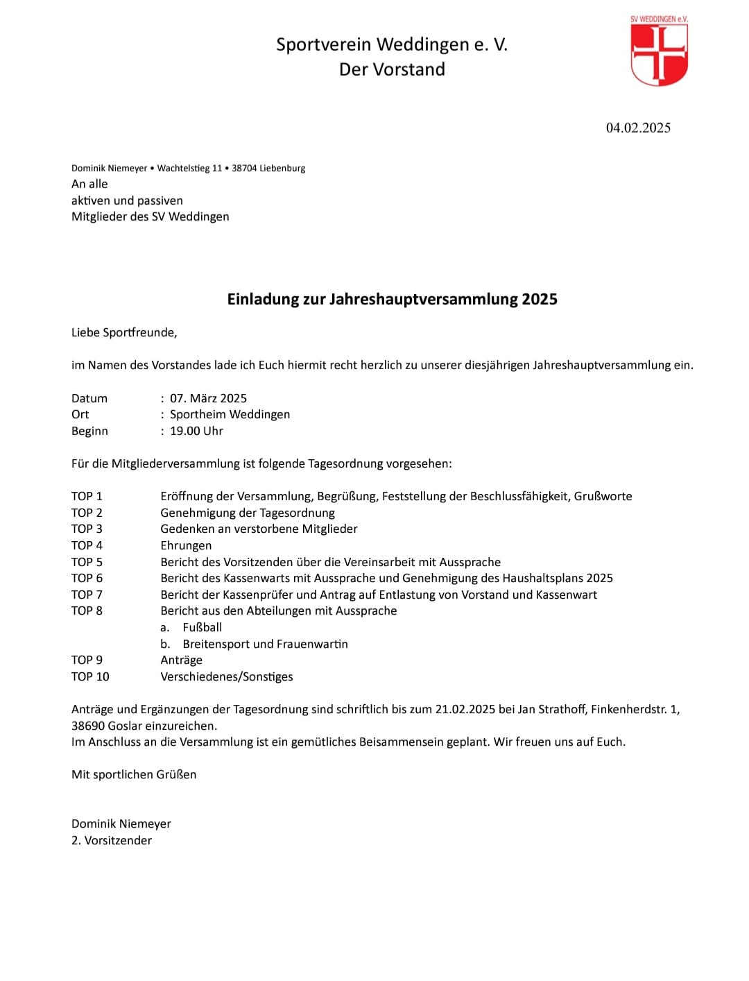SG Weddingen/SV Rammelsberg/ MTV Goslar für die nächste Saison eine Ü50 melden.